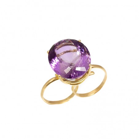 Sortija en oro de 18 kts, con cuerpo doble y piedra amatista.