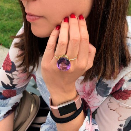 Sortija oro 18 kts. con un original diseño de doble cuerpo y piedra central en amatista de la colección "Colores de Sevilla".