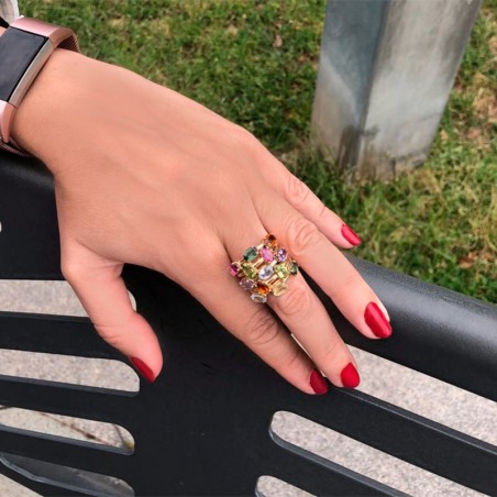 Sortija oro de 18 kts. con piedras semipreciosas de varios colores, de la colección "Colores de Sevilla".