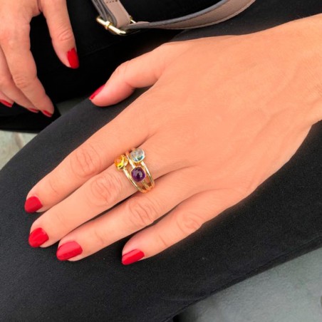 Sortija oro de 18 kts. con piedras citrino, amatista y topacio azul de la colección "Colores de Sevilla".