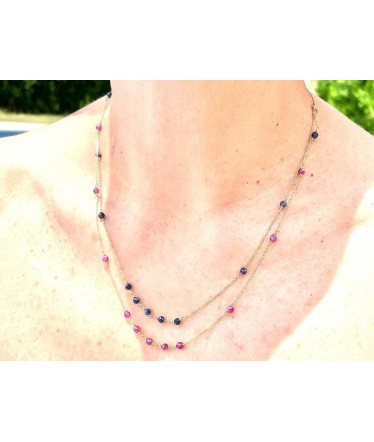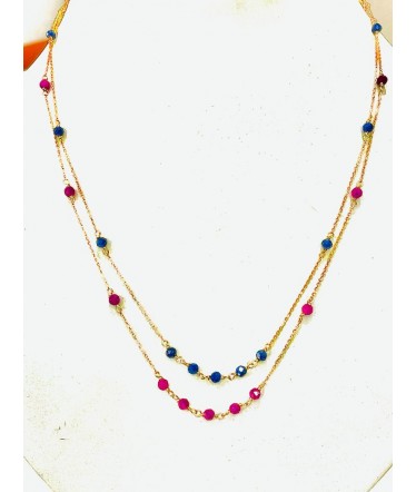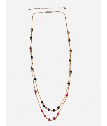 Gargantilla doble de oro amarillo de 18 kts., con piedras en zafiro y rubí.